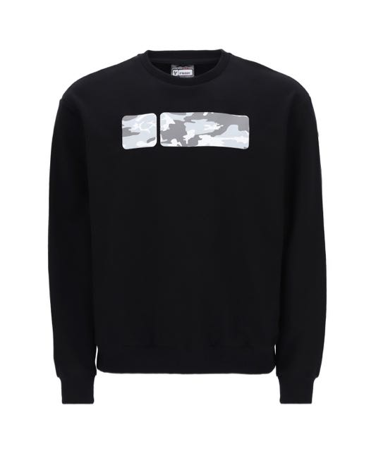 柔らかなストレッチのフレンチテリーのラウンドネックラインがカモフラージュパターンのマキシフレディノーロゴで前面に装飾されたトレーナー。